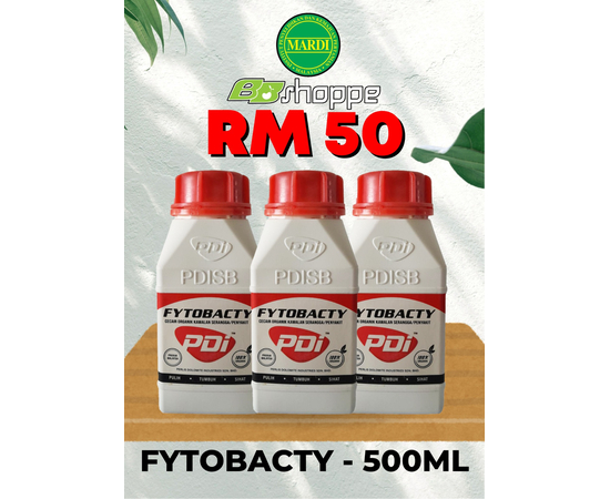 -Bancuh 20ml Fytobacty untuk 1 liter air.Siram pada media tanaman 10 hari sebelum menanam.
